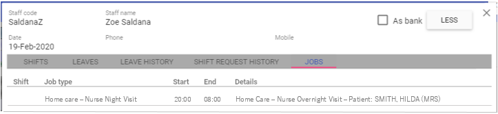 Agency names: Staff members name entered against shifts will appear in the ‘Staff’ list instead of staff code.