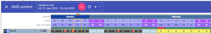In the example below, the rota is under in both the E and L shift on the 13th January: