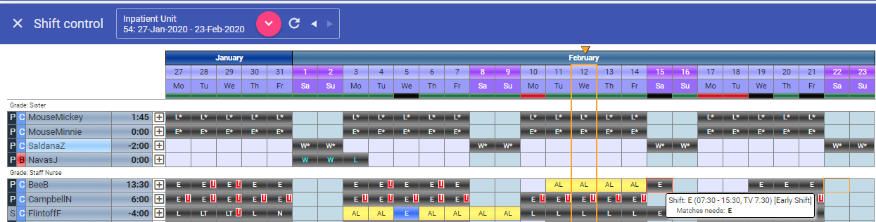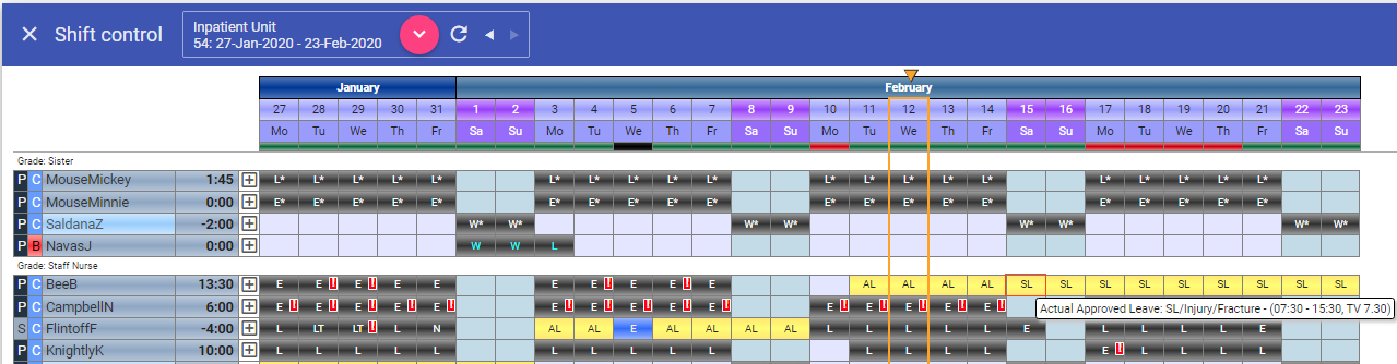 Click on the first shift for which they are off sick (15/2/20):