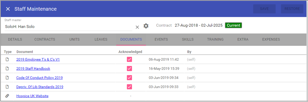 All documents, including their acknowledgement status are also displayed in