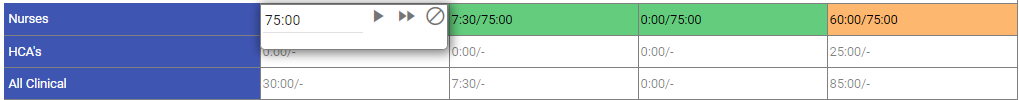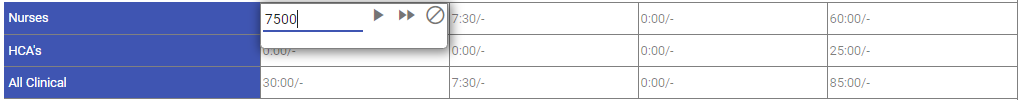 To set up the leave limits click in the cell for nurses on the first week on screen, we are presented with the ability to enter a limit in [H]:mm: