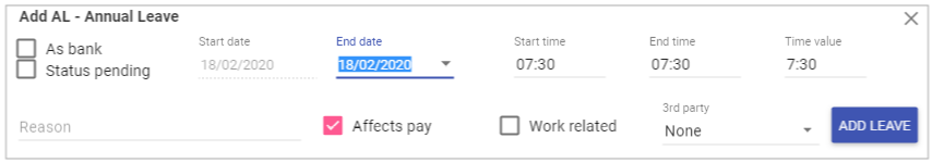 Once complete, click the ADD button to add the leave to the rota.