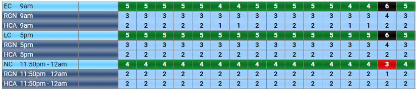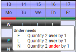 there is a need left for them or not. There is also the option to show the needs totals under each main shift count. The over/under/correct colour is separated from the count itself so you always have a total number of staff on shift