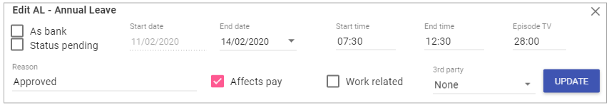 NOTE: Unticking the Episode box will allow you to just select a single day of leave from the episode to change.