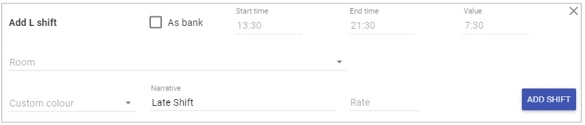Custom colour: Allows the shift to be displayed on the rota in a different colour to distinguish an additional meaning (Key holder for example).
