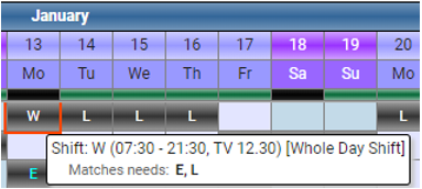 If you hover over the W shift the narrative displays the E and L shifts matches the needs: