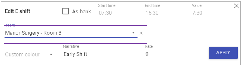 You can also add or change room assignment on adding or editing shifts on the rota: