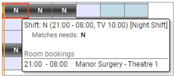 On the left hand side of the screen clicking on the required Shift Code will return you to the rota view. The Shift Code will now appear in the selected cell.