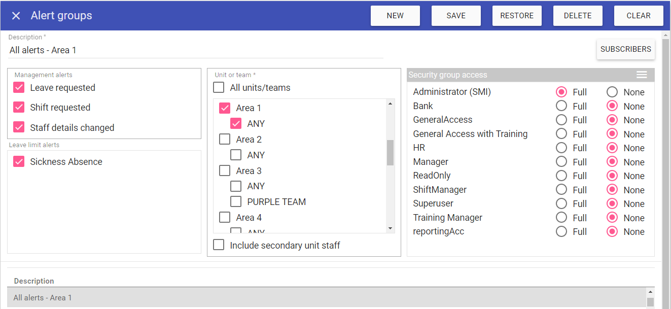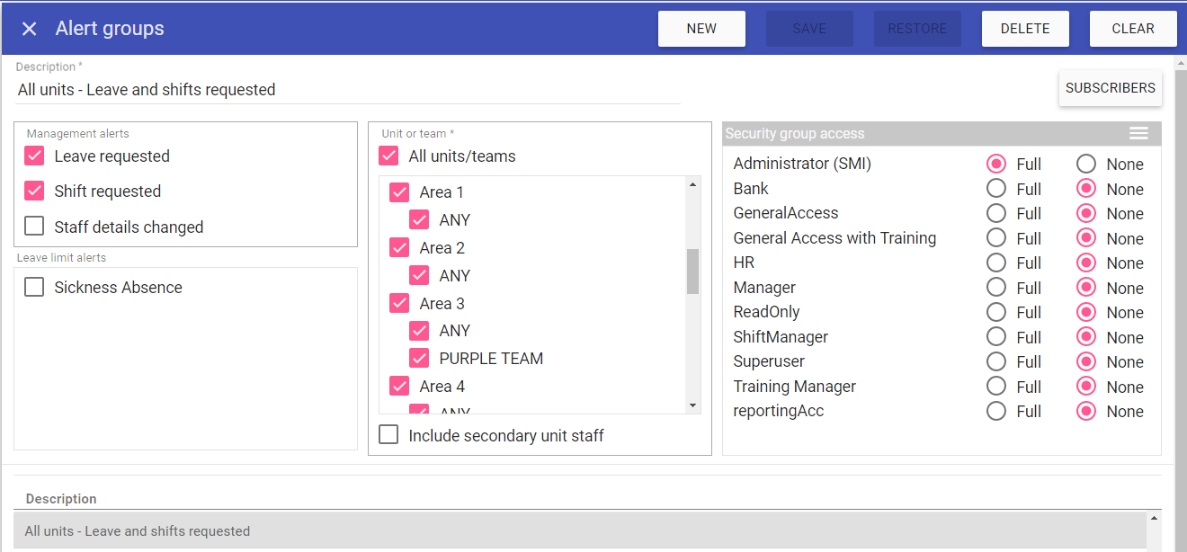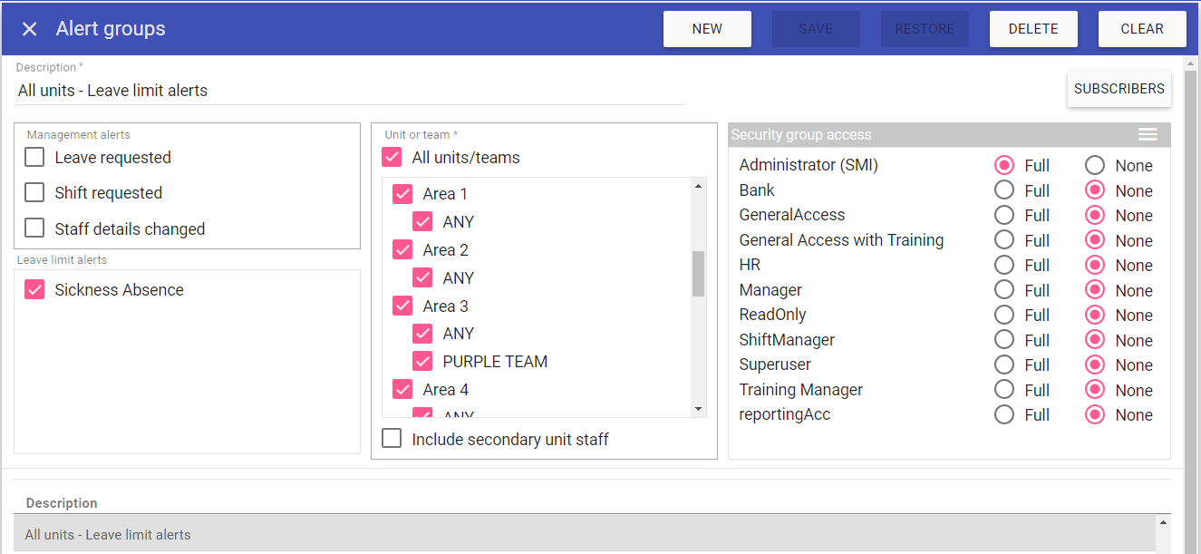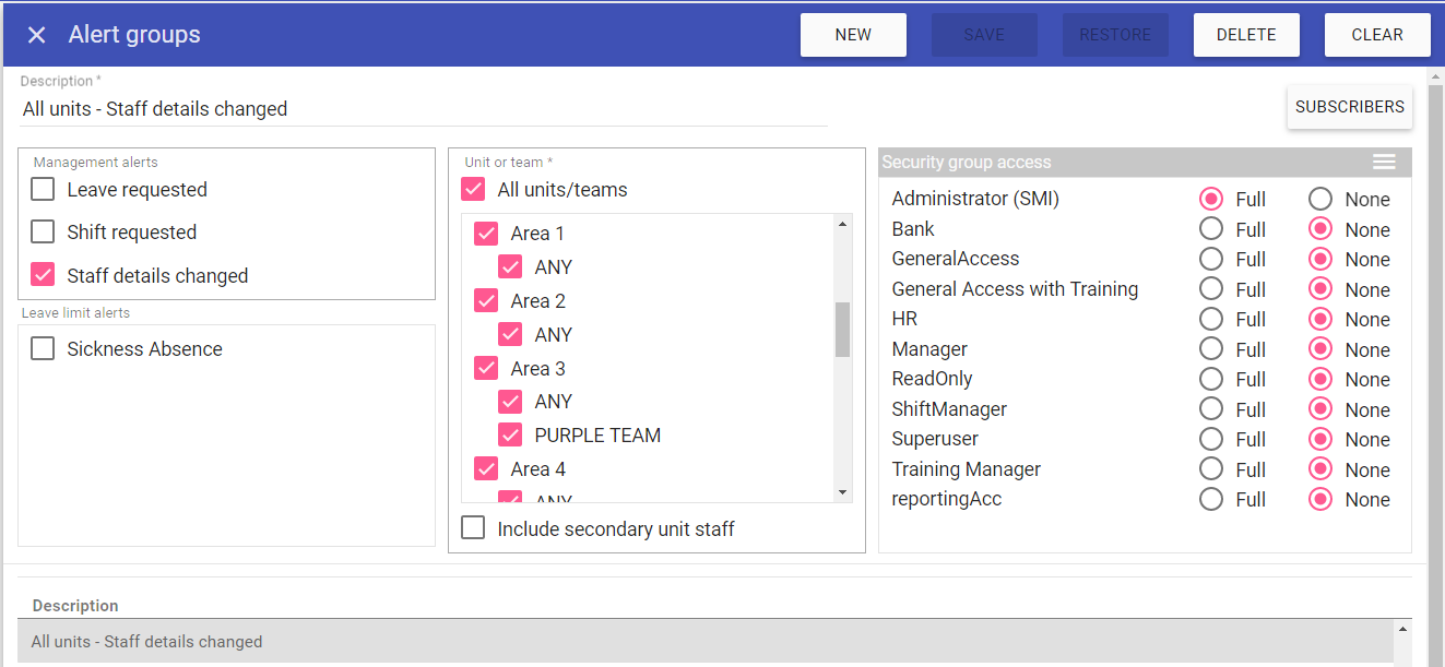Alert groups is where the Staff management groups are created/updated and deleted. Alert groups allow you to assign