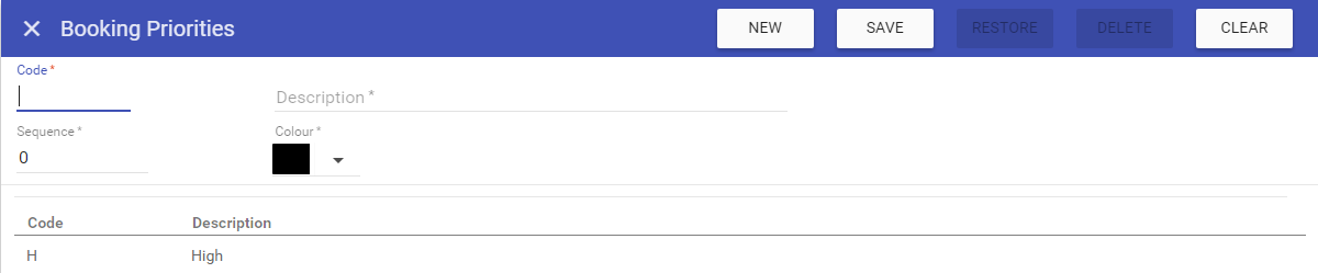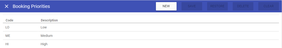 booking priorities when accessing this screen.