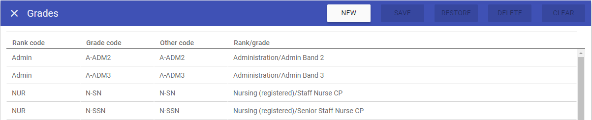 This screen allows you to maintain the grade details that are stored on the system, as well as creating new