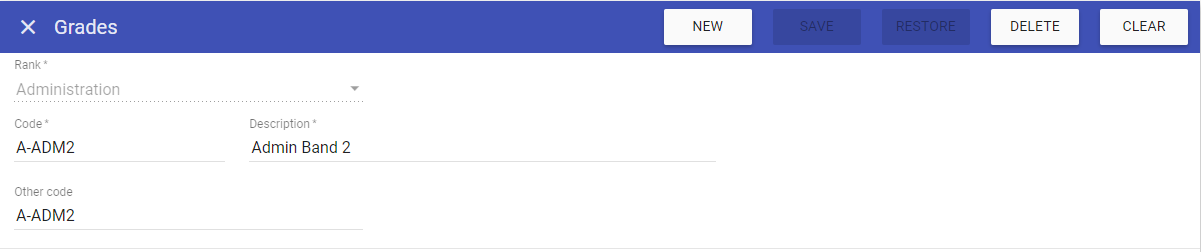 Rank: Choose the rank from the predetermined list for which the grade belongs to.