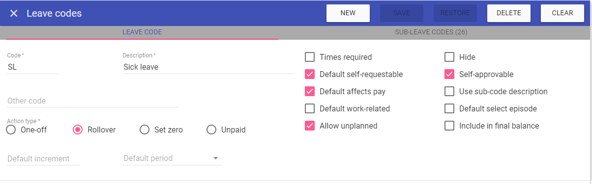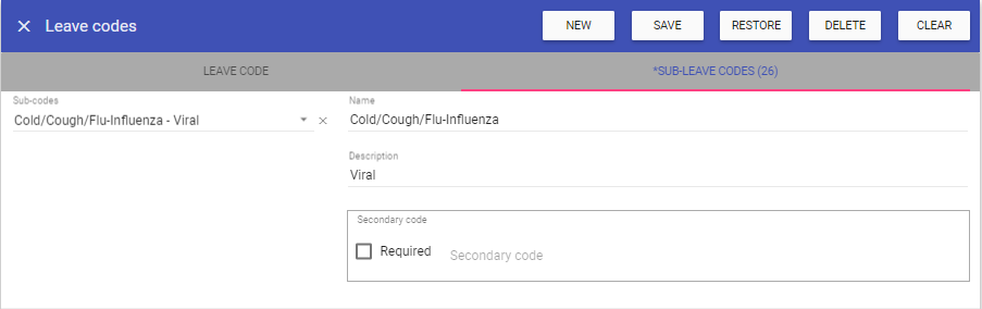 Sub-Codes: Is the unique identifier for the Leave Code set by the user.