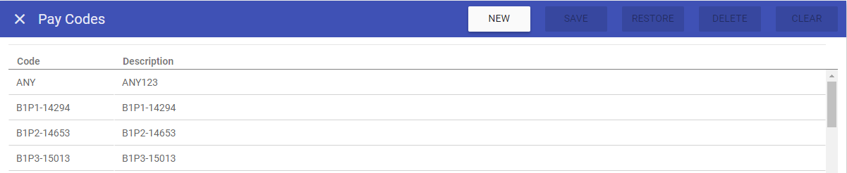 This screen allows you to create new pay codes, as well as maintaining existing pay codes that are stored on the system.