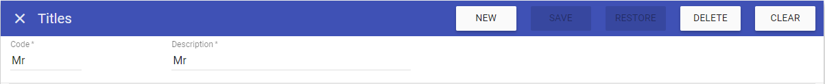 This screen allows you to create new Titles, as well as maintaining existing Titles that are stored on the system.