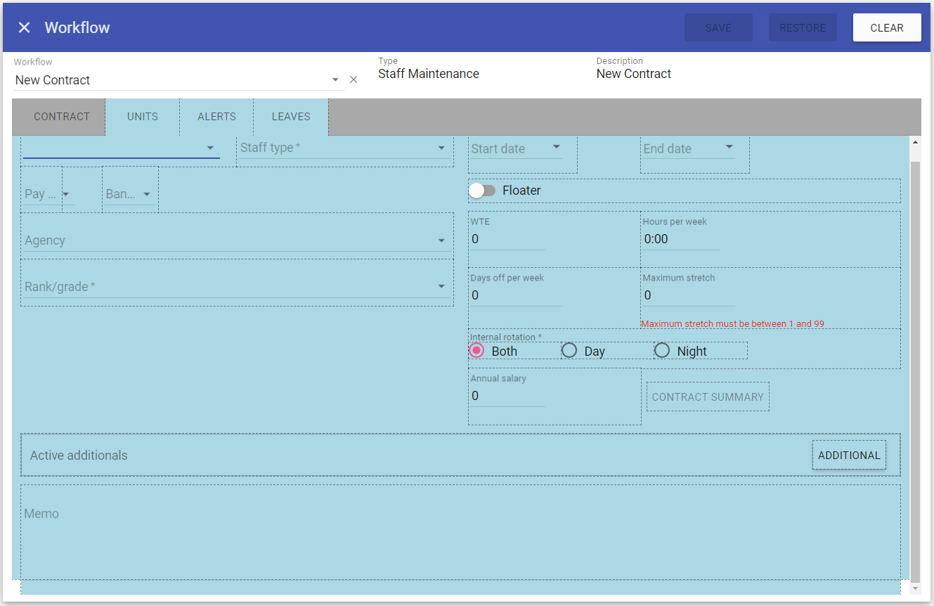 REMEMBER: Any staff completing contract changes must have security group access to all the fields and screens required during the workflow or they will not be able to complete the addition of a new staff member/Contract Change.