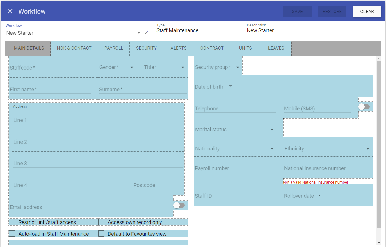 Staff Maintenance and allows you to mandate more fields. This includes the setup for all