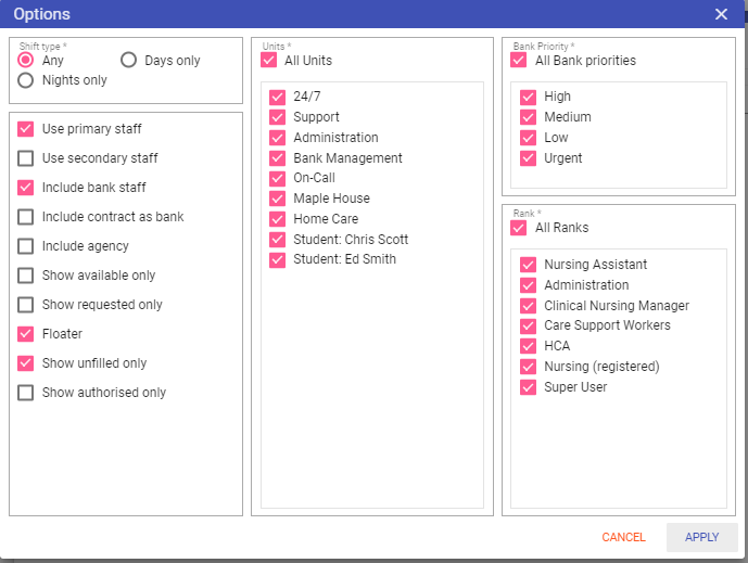 Requested only: When selected will show only staff that have requested to fill shifts themselves.