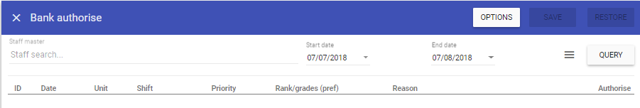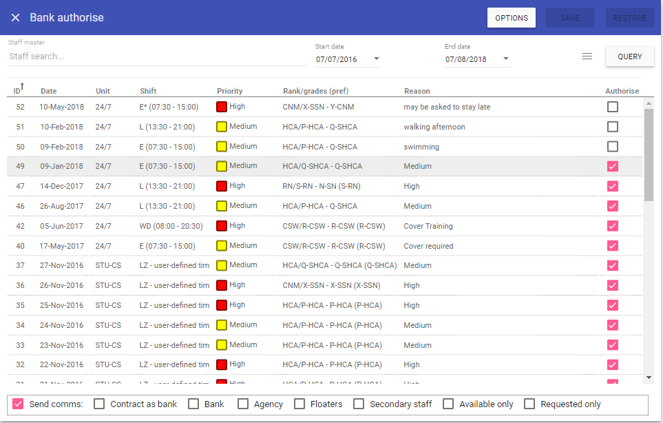 Authorise: When ticked this confirms and accepts the staff request to work.
