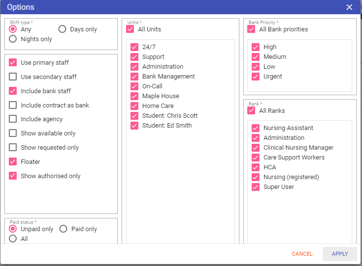 Show requested only: When selected will show only staff that have requested to fill shifts themselves.