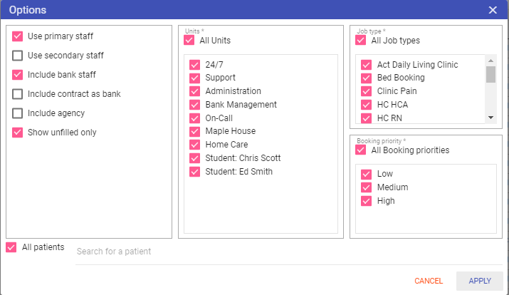 All patients: Select the patients to be displayed.