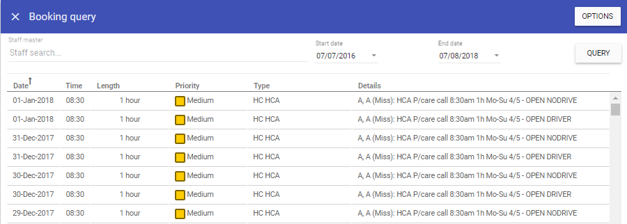 The Booking Query Report lists all iPlanner Jobs within a date range. It also shows if the booking requests have already been filled by a staff member or additionally it allows you to fill booking requests with available staff members.