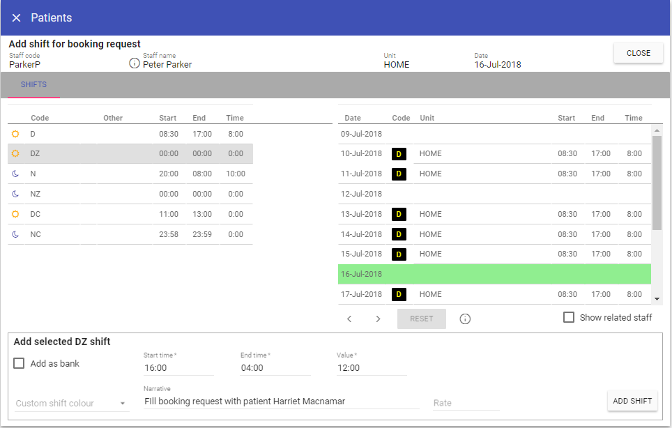 Click on a shift to the left hand side where those shift hours cover the requested hours and click Add shift at the bottom right.