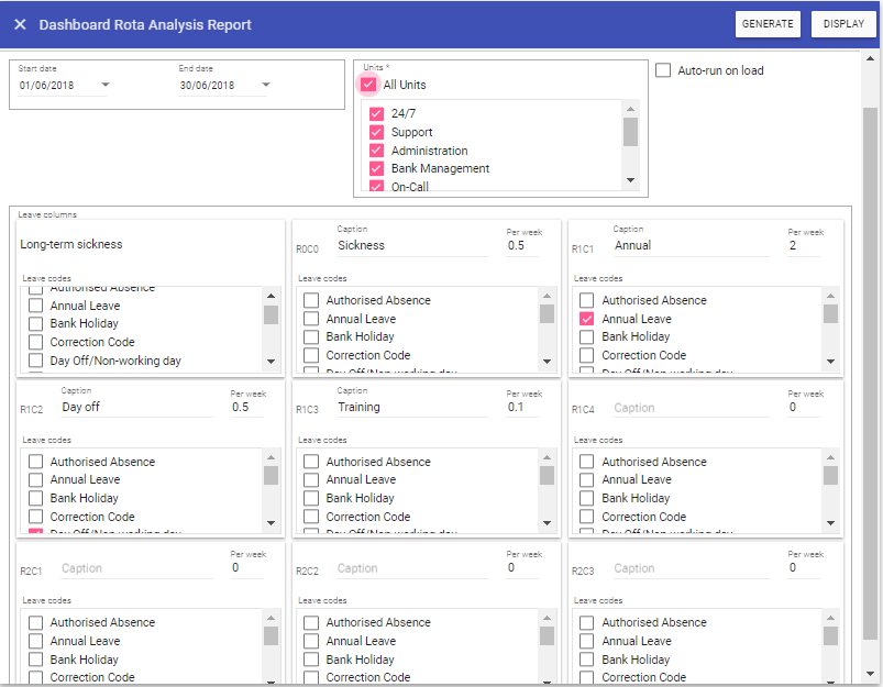 Leave Columns: Select leave groups to appear together on the report.