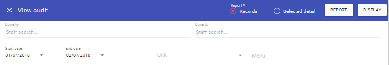 Menu: Lists trails made in this screen for example, ‘Schedules’ will list all changes made in Unit Schedules, ‘Staff Maintenance’ will list all changes made within staff maintenance.