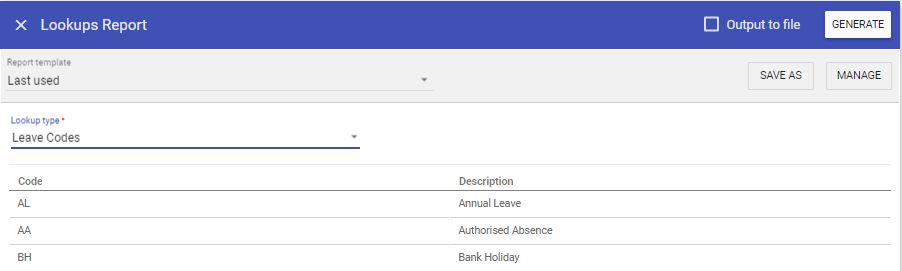 In the example below leave codes has been selected, though you can report choose any Admin variable.