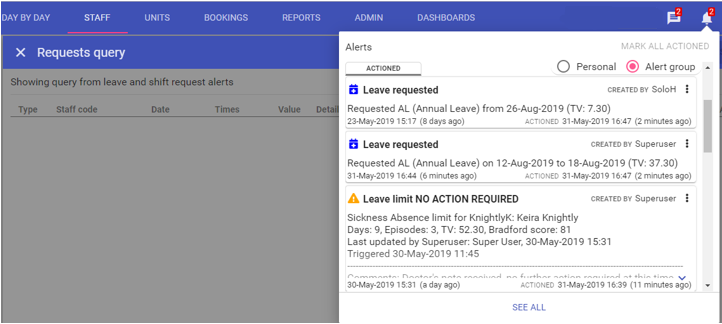 SEE ALL - Takes you to Staff>Alerts - the full screen window for Alerts.