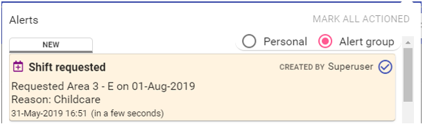 MARK ALL ACTIONED - Only available in the personal Alerts section.