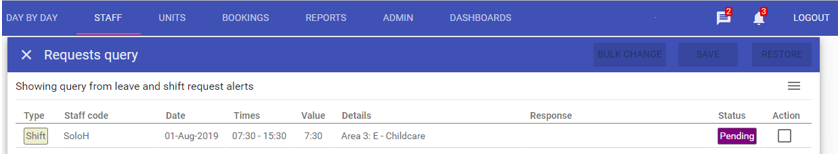 2. Shift requested - When a staff member in a group they manage requests a shift.