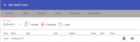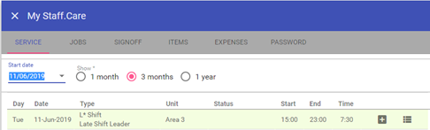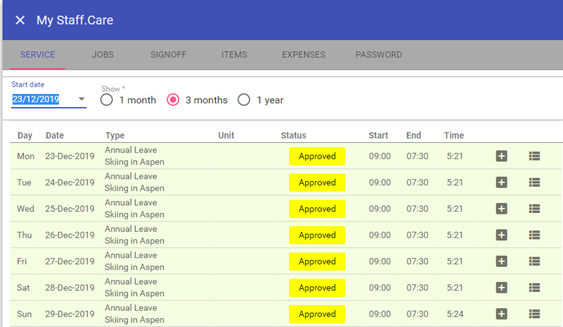 Clicking on the Rota change Alert will take you to your service tab in My Staff.Care with the added shifts/leaves in the Alert highlighted green: