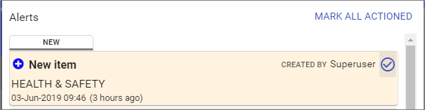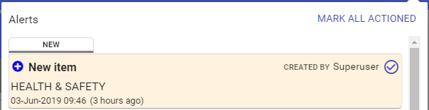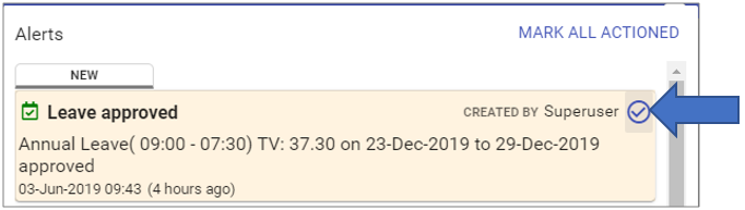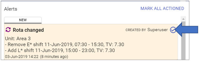 Finally, on the Alerts popup you can click the actioned icon thus marking the Alert as dealt with: