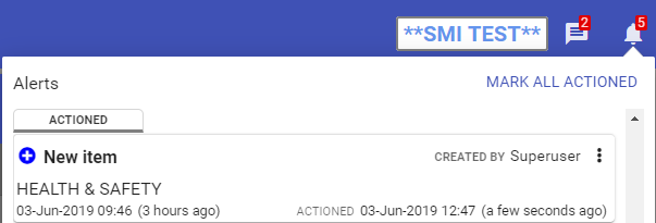 Header ACTIONED - Any Alerts which you have actioned but have not yet been archived, will display under the actioned header.