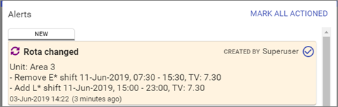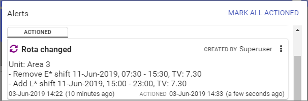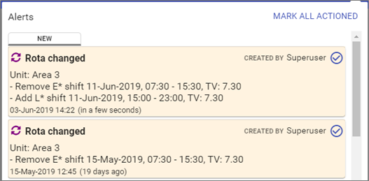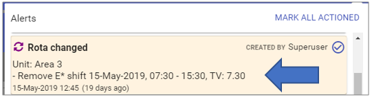 Each Alert will contain the Unit and any shift/leave changes made to that rota, with the date and times of each shift/leave affected.