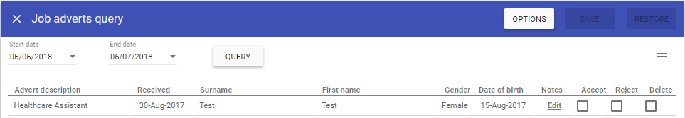 Job adverts: Select the Job Adverts to view - Tick all to see all available Job Adverts.