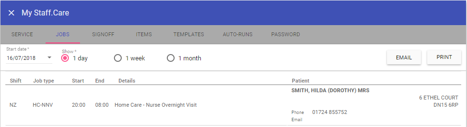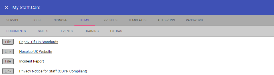 The My Staff.Care area is a 'self service portal' that provides a single location for staff members to find and view details of all elements associated to them and the schedule