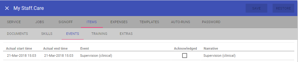 This screen allows you to view staff Events that are created in Staff Maintenance > Events. It is a viewer only however the the ability to Acknowledge events is possible via this screen.