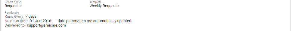 Clicking on the report reveals the details of the automatic generation and email parameters of the report.