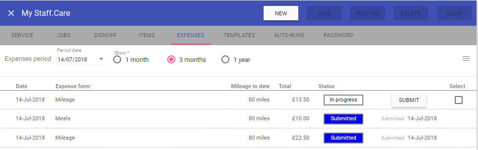 Submit: Clicking submit allows a manager to approve expenses for payment.