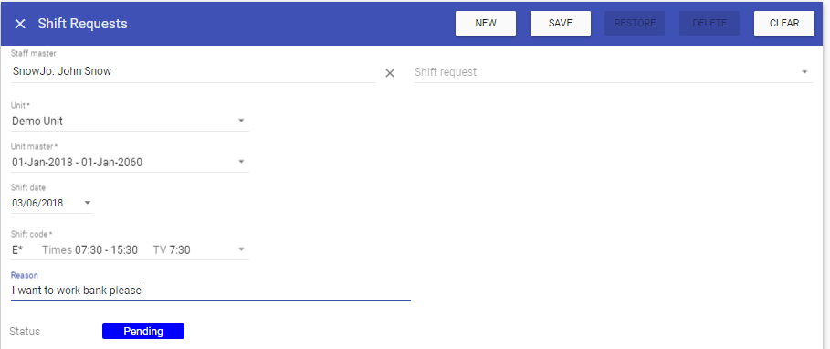 Shift requests is for Shift Requests Only. It allows you to create new requests for time on or to even work as bank as well as maintaining all past and future requests already made.