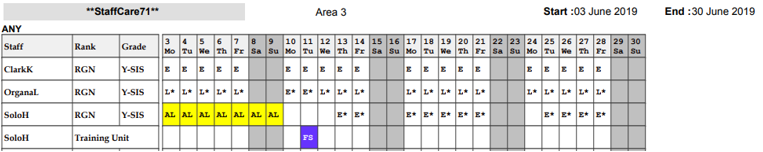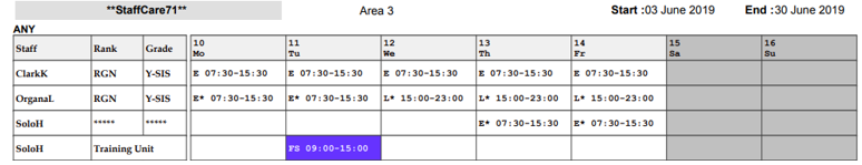 As you can see, there is a separate row for the Training unit on the report for Han Solo with his FS shifts.