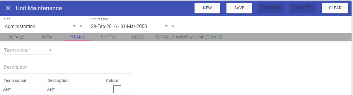 This screen allows you to configure Units created in Admin > Units. The configuration here filters through to the rotas.