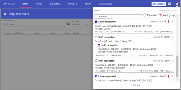 SEE ALL - Takes you to Staff>Alerts - the full screen window for Alerts.