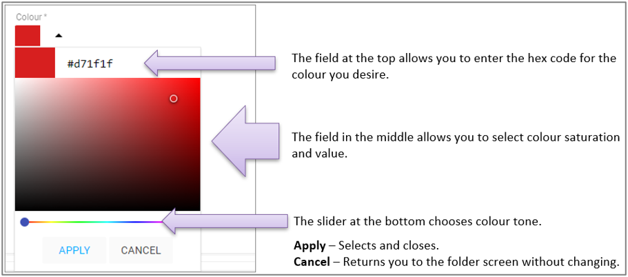 Colour: Used to assign the folder a colour using the new colour picker (can enter hex codes at the top too).