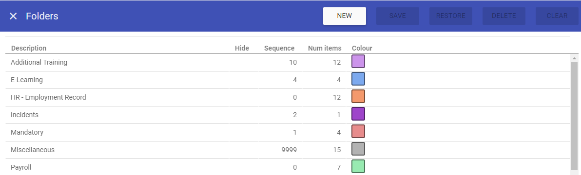 Sequence: Order the folder will appear in Staff Maintenance and selection lists (lowest at the top).