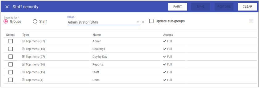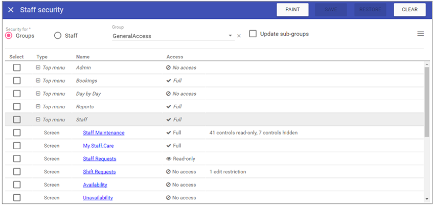 NOTE: The Staff Security should now appear in the list of Staff Securities when accessing this screen.