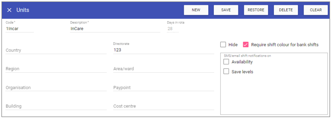 Hide: Ticking hide means that the unit is no longer visible for any users in all parts of the system except here.